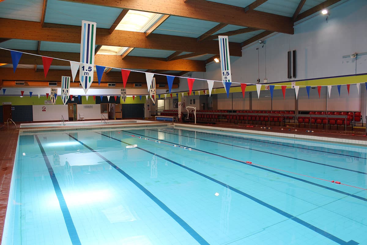 A traditional swimming pool boasting a 6 lane 25m pool for serious swimmers and a teaching pool for beginners or younger swimmers.